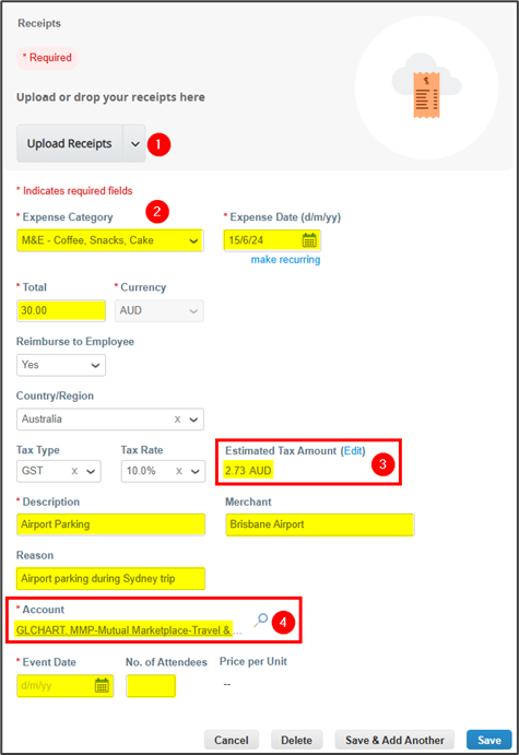 Coupa Expenses is used to upload and itemise tax invoices for business expenses.