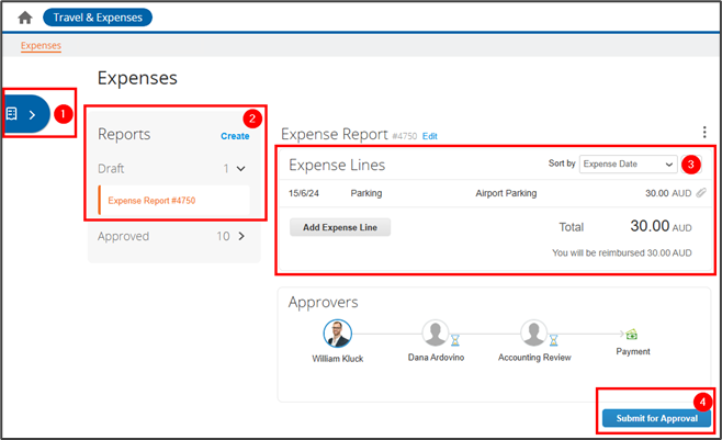 itemise tax invoices and submit claims on behalf of other nominated users. An Expense Delegate cannot approve Expense